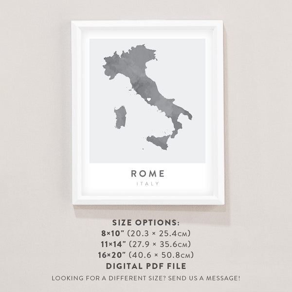 Whether it's the place you love to travel to, or the city that you proudly call home, you'll love this Rome, Italy map print!